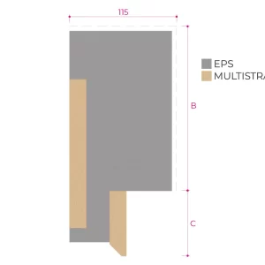 A 115 mm thermal jamb constructed with wood and expanded polystyrene (EPS) on three sides. Designed exclusively to accommodate a centrally mounted window frame. Exterior to be plastered.